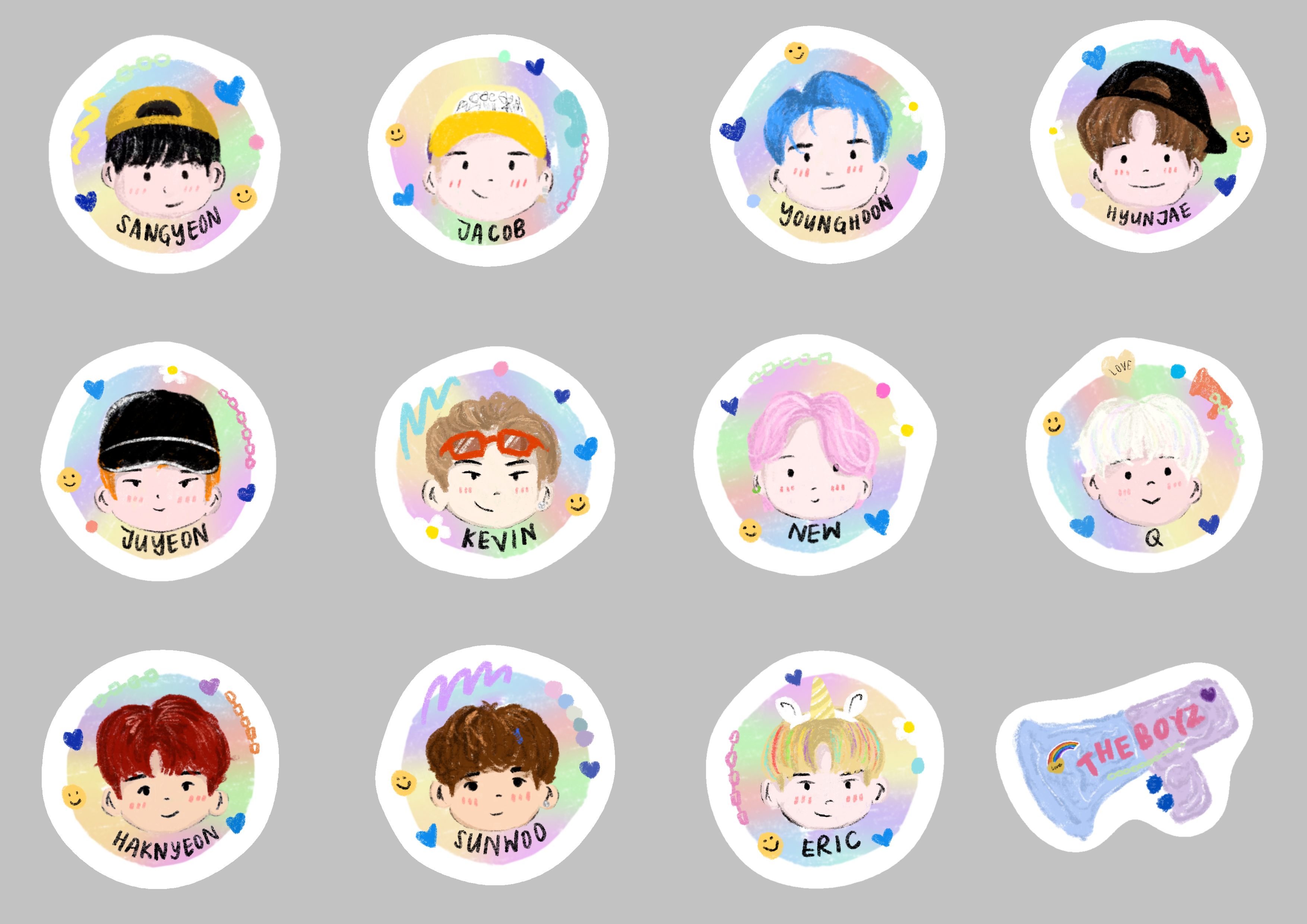 Sticker designs based off THE BOYZ's WHISPER comeback concept.